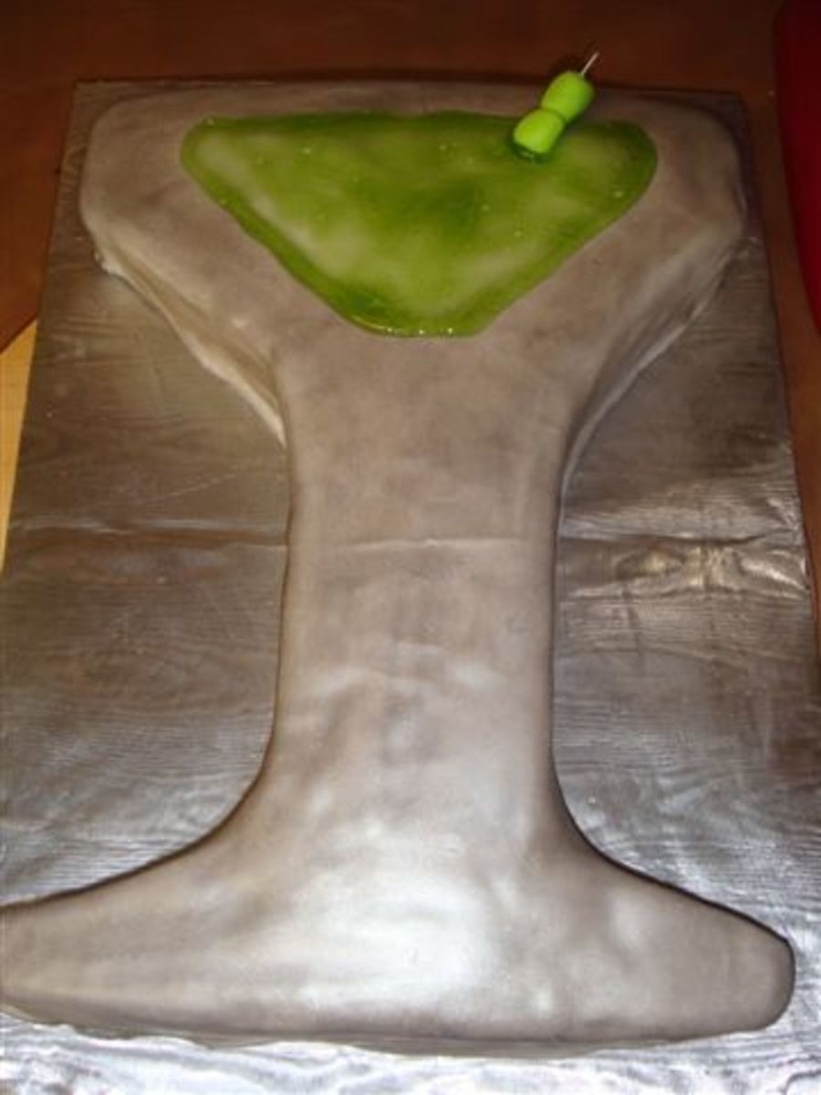 Cut from a sheet cake and covered in fondanted, brushed with Luster dust and added tinted piping gel.
