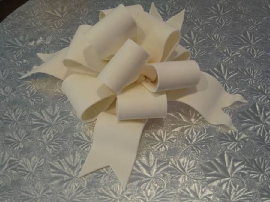 This is my first attempt at a gumpaste bow. I made this for a wedding cake I made. I was very pleased with how it turned out.
