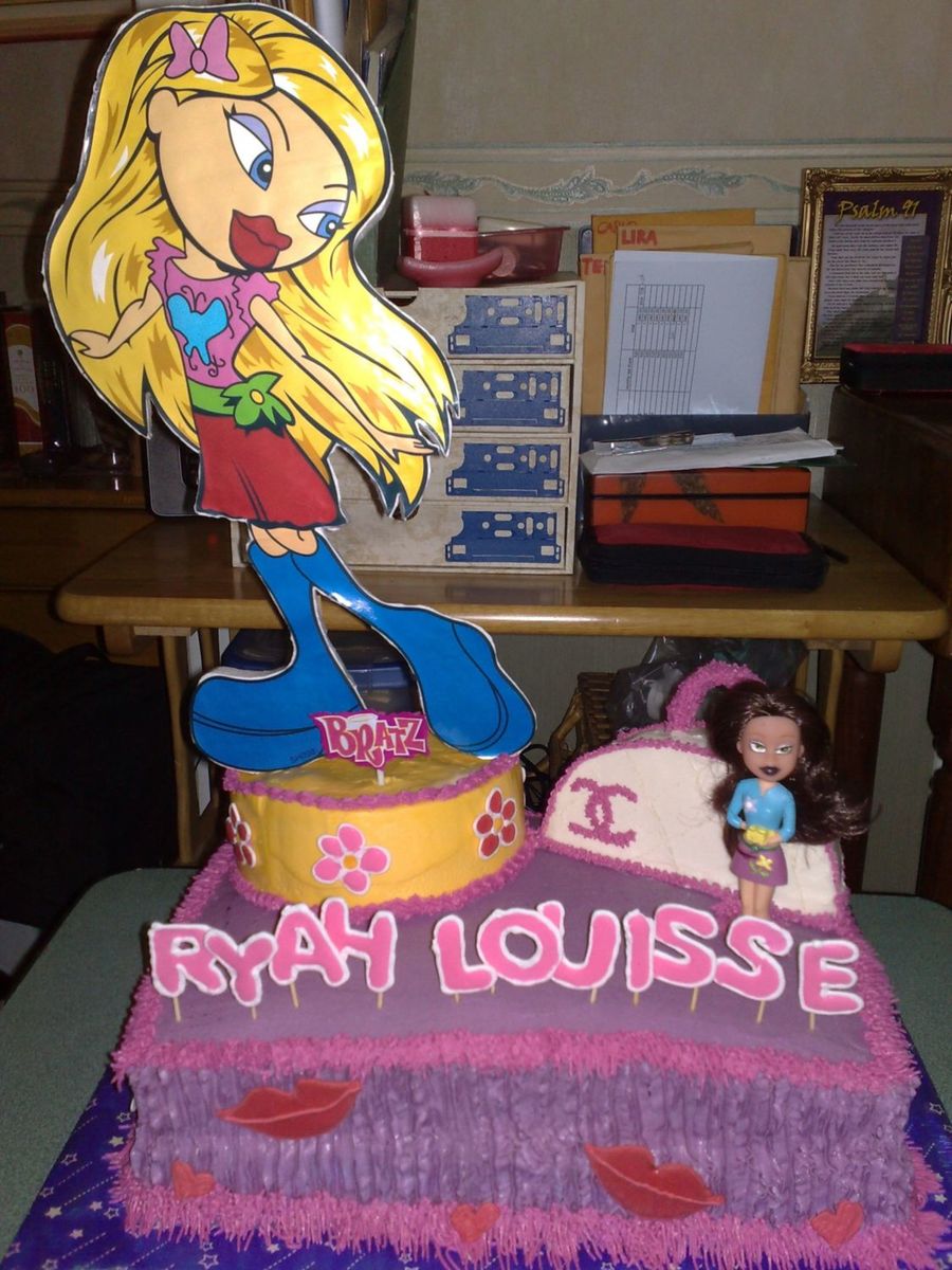 chocolate cake with fudge filling...buttercream icing...royal icing decorations...styro topper and doll...thanks to cc for the inspiration...thanks for looking!!! =) would push down the letters tomorrow =)