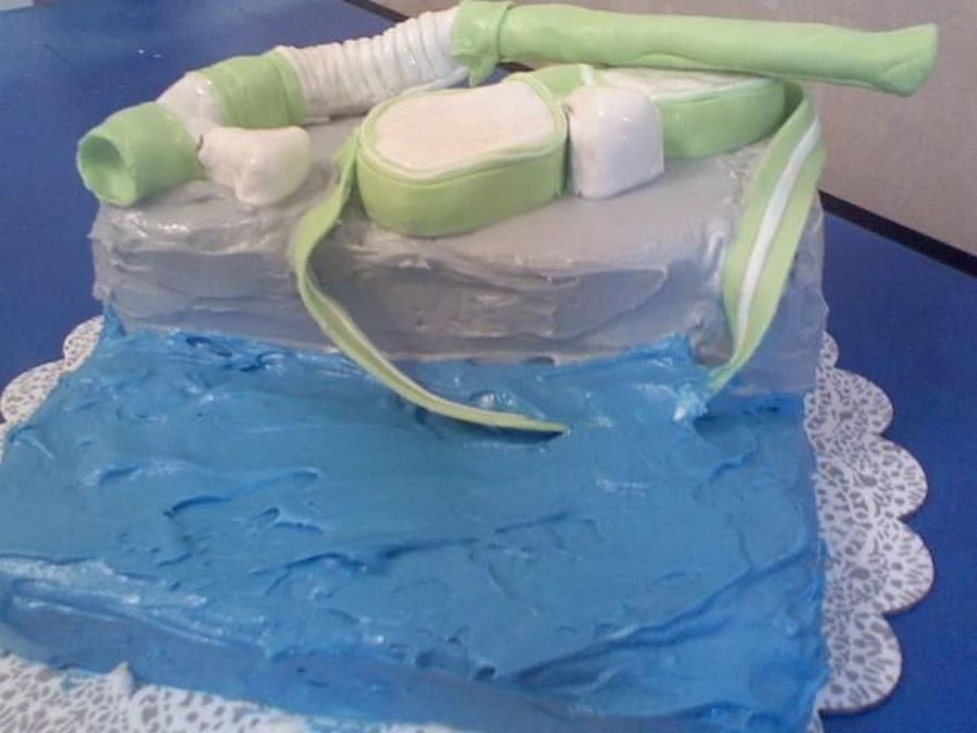 This is a tres leches cake, I covered in BC, and made the scuba mask out of rice crispies and fondant.