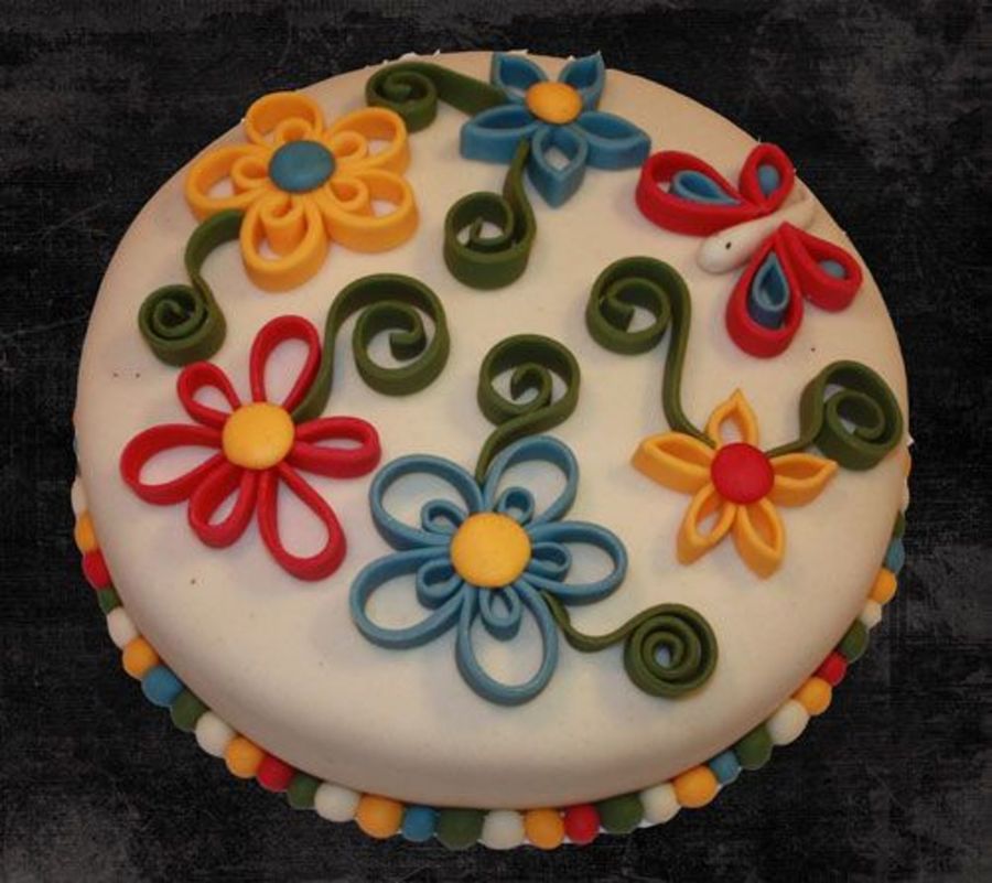 Today I tried something I've wanted to try for a long time - fondant quilling. Since it is such a grey, rainy day in Norway today, I thought we needed some bright and fun colors to bring a little of the summer back...