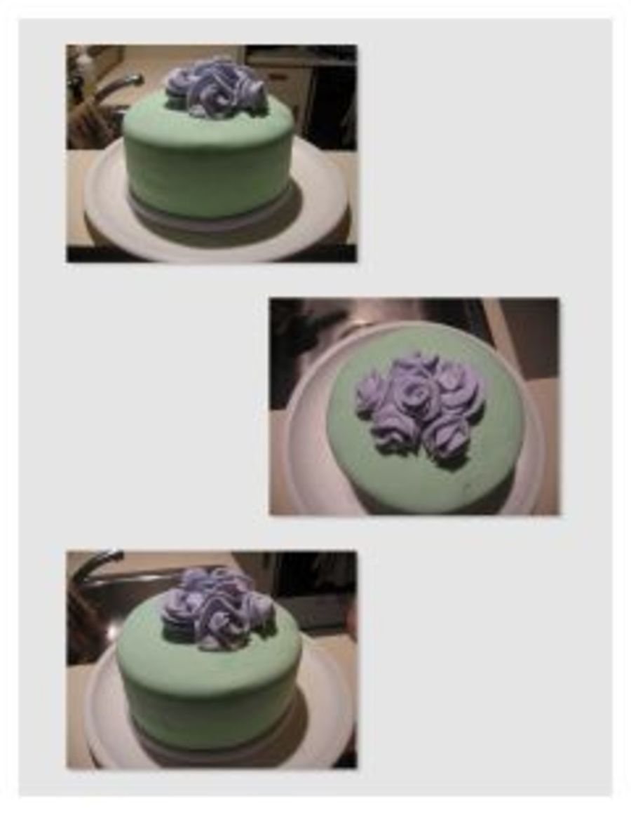 This is one of the first cakes I ever made/decorated. It is a chocolate cake with mint flavored fondant.