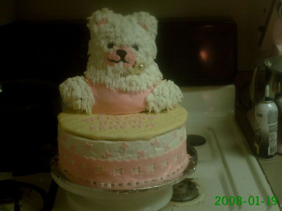 I did this cake for a friend's daughter. Everything is edible except the rattle. I wish my colours had been brighter or my camera better. I enjoyed doing this cake.