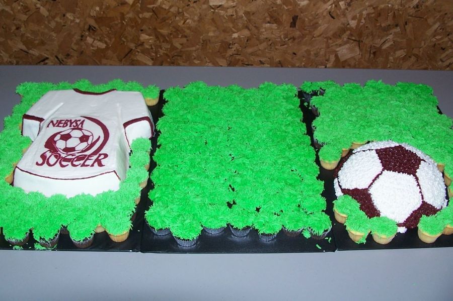 I made this for my kids soccer organization. Tshirt is covered in bc with a fbct logo, ball is also covered in bc. Mini cupcakes are also covered in bc. I wanted to come up with something to write across the "grass cupcakes" but unfortunately I ran out of time and ideas. I got a lot of great comments on it but I really wished that I had the time to come up with something , it looks so empty . oh well.