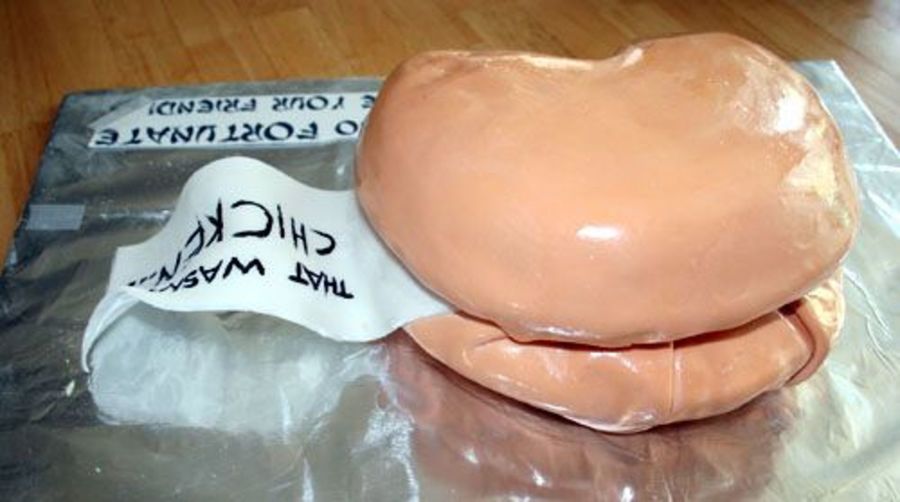 Birthday cake for a friend I'm fortunate to have - 'fortune' read "That wasn't chicken" Covered in MMF. Folds on back weren't very clean, and there were several things I'd redo if I were to make another fortune cookie - but overall I was happy with it - and she was thrilled.