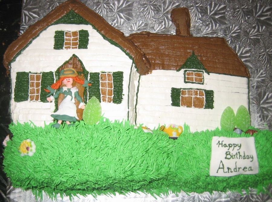 I made this cake for my friend Andrea who loves Anne of Green Gables. Anne is fondant and everything else is buttercream (except for the chocolate rocks and spearmint trees). She loved it! :)