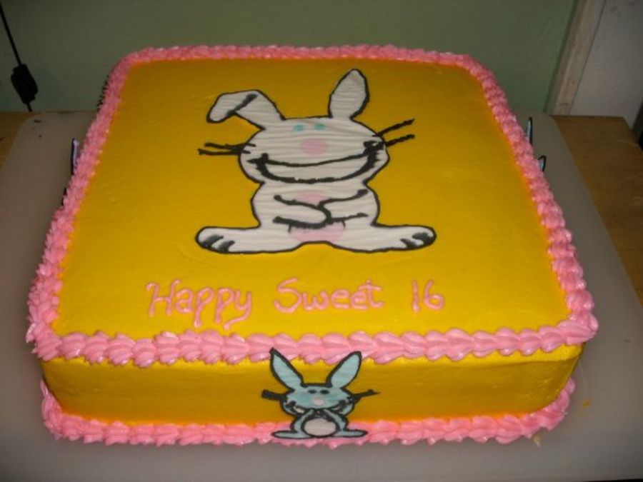 My daughter is a huge fan of Happy Bunny. I had a little trouble with my colors running on the bunnies. The cake is iced in buttercream and the bunnies are made with royal icing.