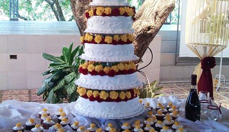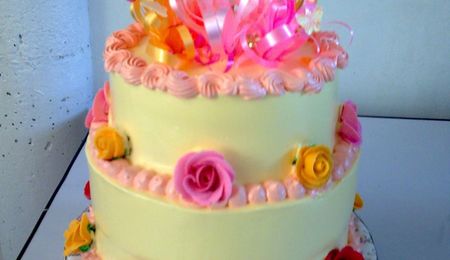 Chocolate cake with marshmallow icing and sugar flowers.:)