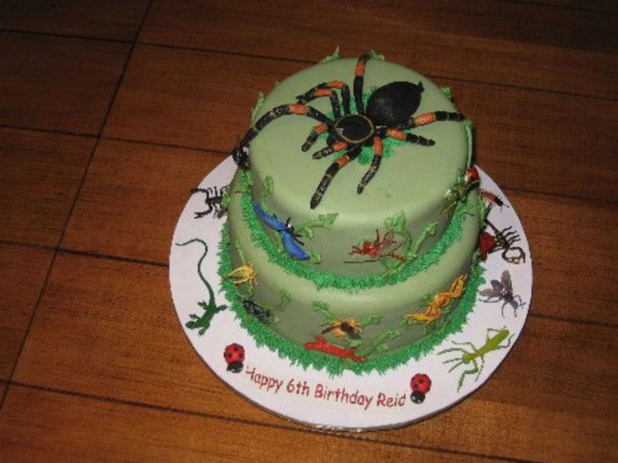 Covered with fondant, buttercream vines/leaves......plastic bugs attached with royal icing. Lady bugs made with fondant/gumpaste. Hope you like it.