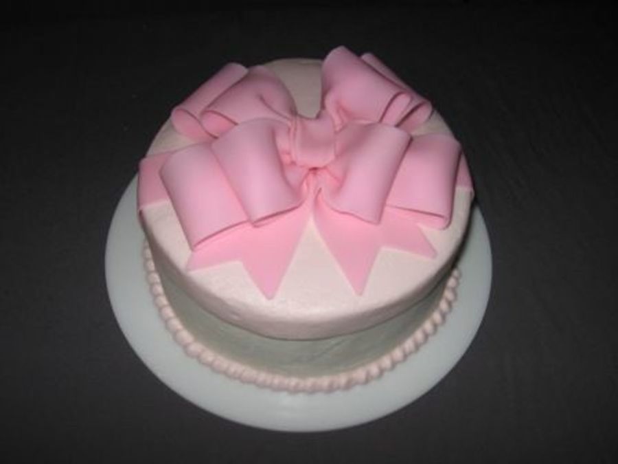Again, Angela came to the rescue!! Fondant bows, and used waxed paper for the two-color separated look.