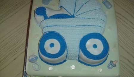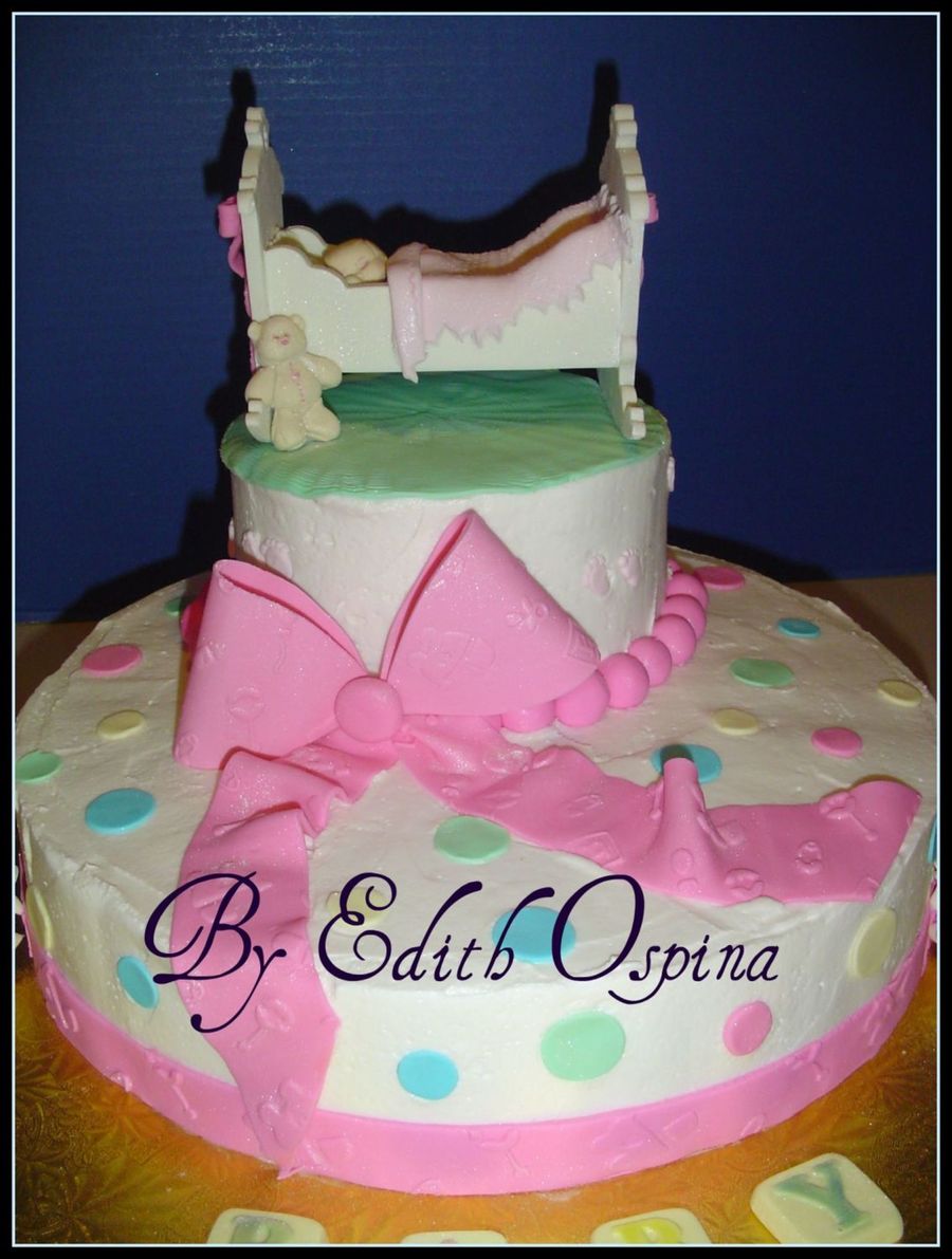Baby Shower cake for tomorrow, buttercream with fondant decorations and gumpaste crib.