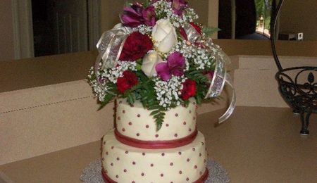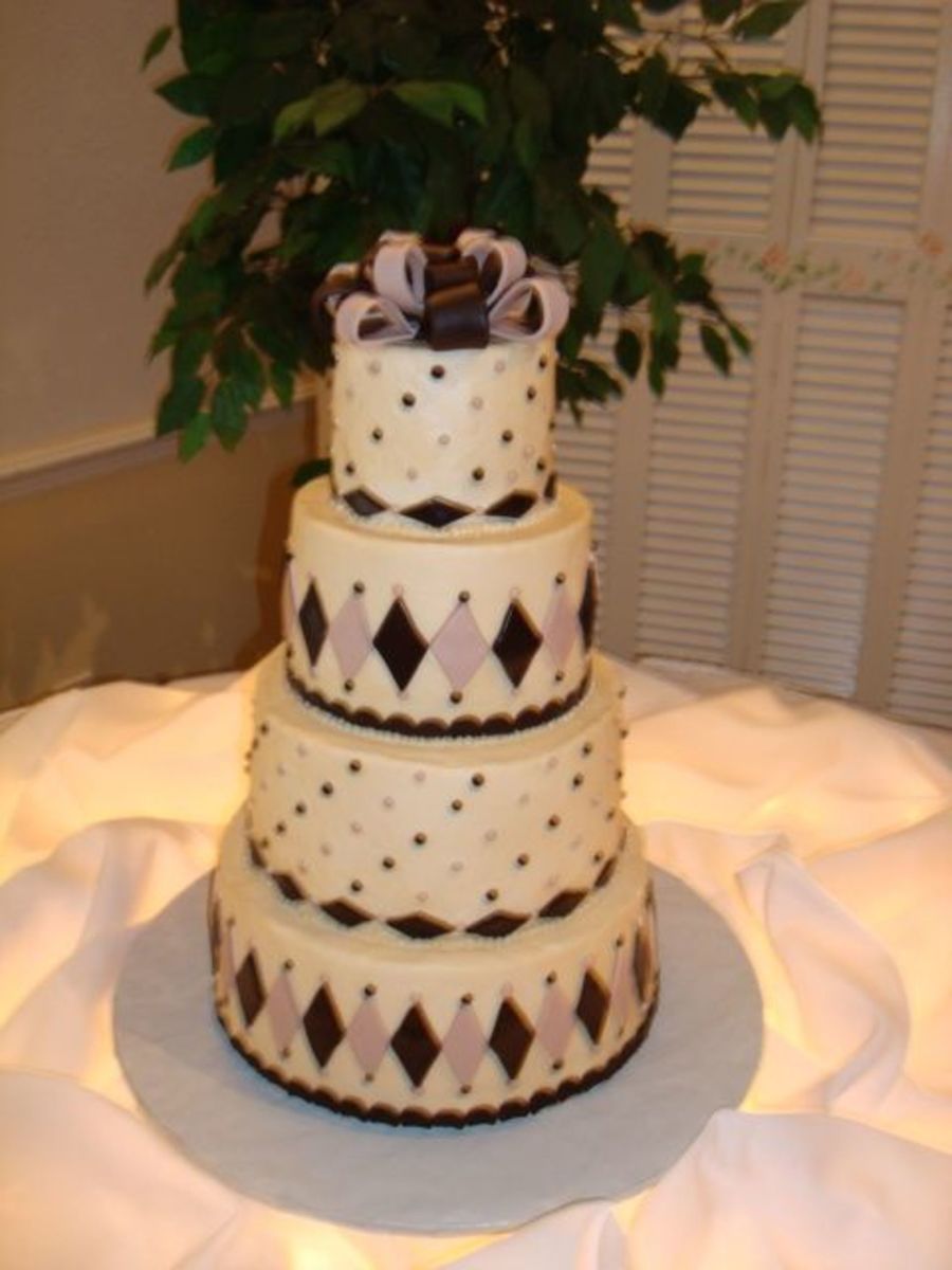 This cake was for a friends wedding. It's 4, 6, 8, & 10, white cake with buttercream and fondant accents.