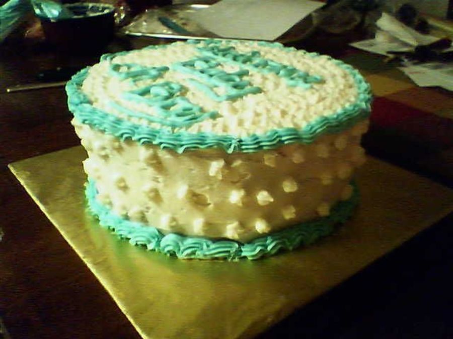 Simple round cake for Baby Shower, I'm still trying to get this icing the cake thing down, I will keep trying till i getting it right.