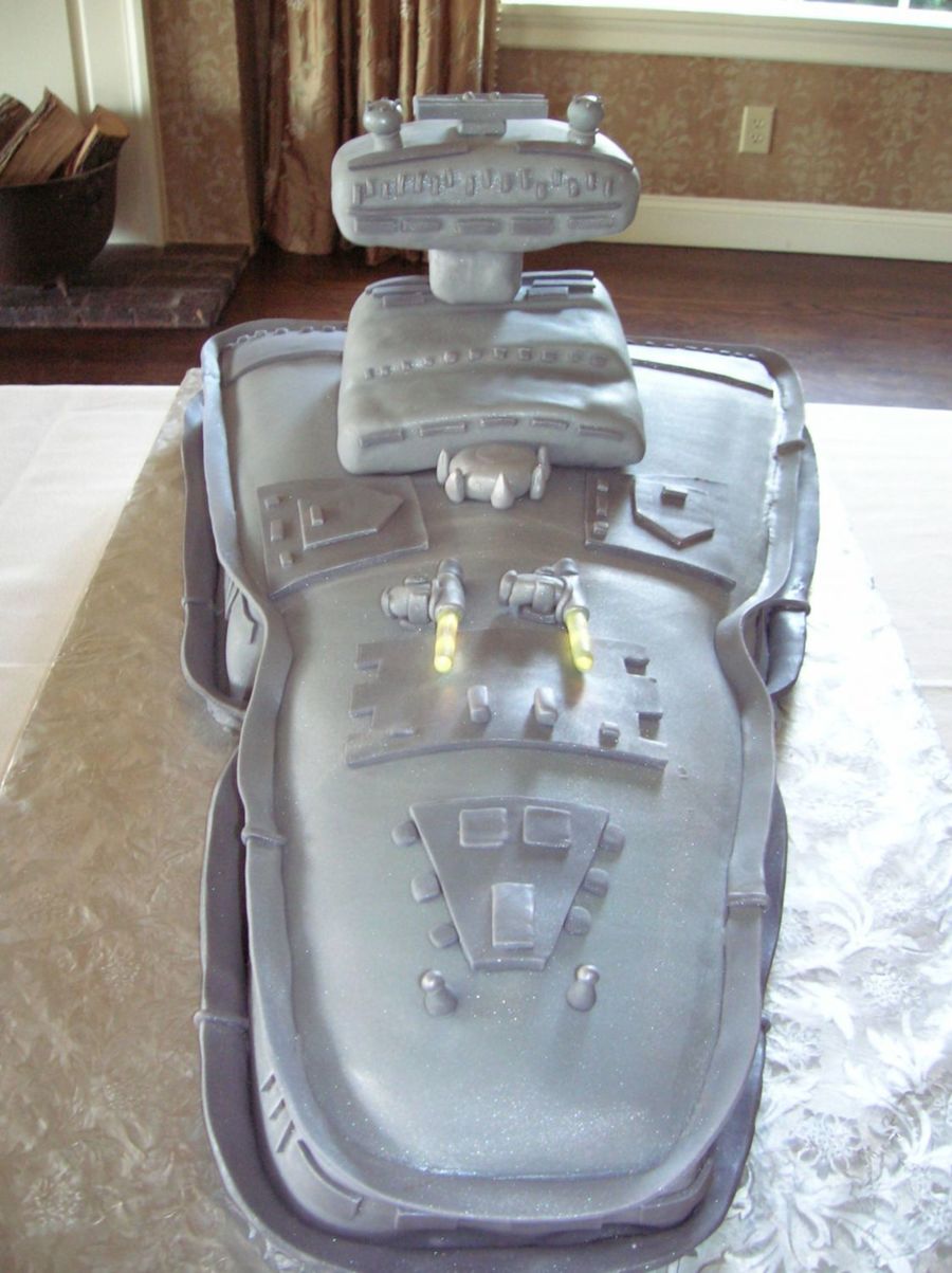 This was a marbled cake with Black Raspberry Filling, covered in Fondant and the little green guns and the back bue engines light up. I did one before, but this was the finished product for another wedding. Thank you for looking