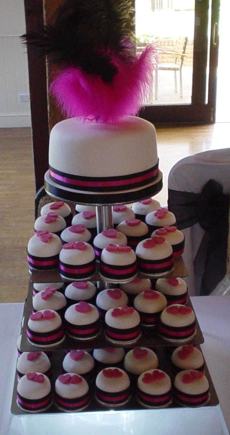 Individual cakes in the Bright pink and black colour scheme