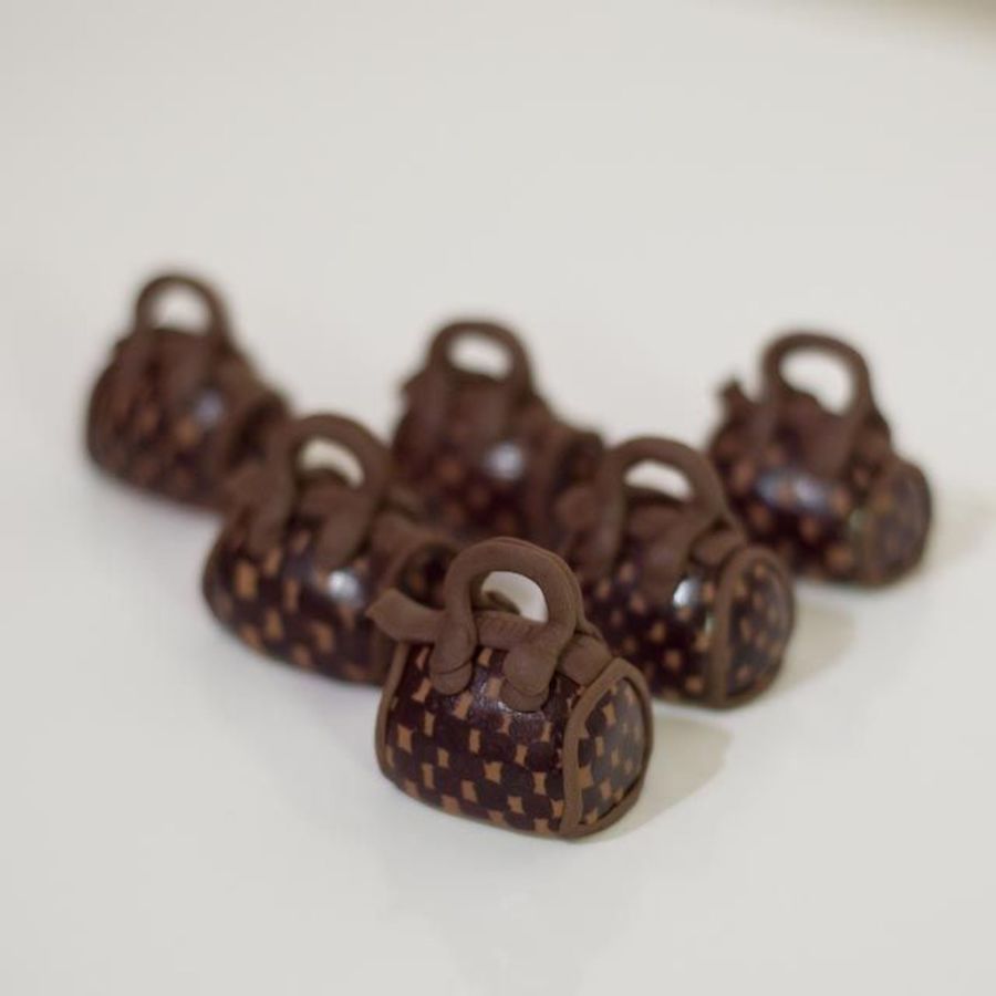 I made these hand painted mini purses out of fondant. They were placed on petit fours.