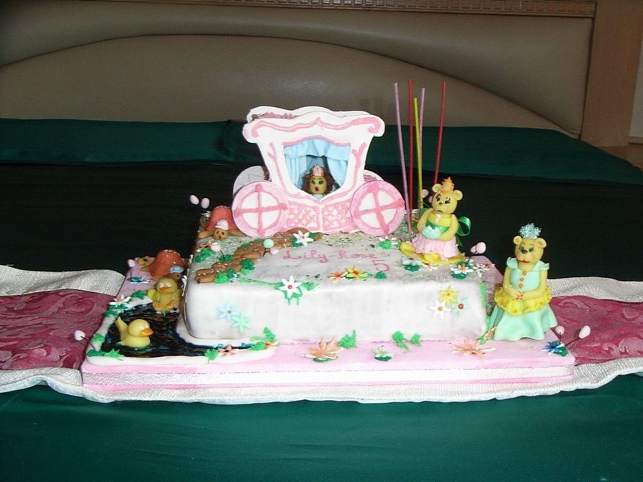 Carriage made of pastillage. Little girl wanted bear princesses.