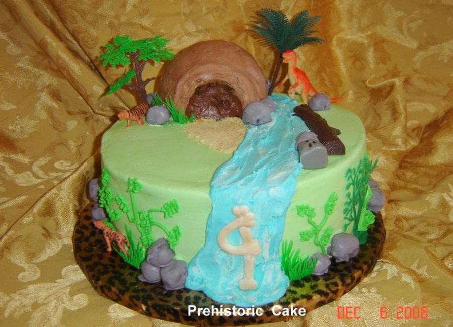 12" Chocolate/Sour Cream cake with Oreo Filling, Cake on tip was made in ball pan, Rocks are Cake balls. This cake was made for a party at a Bowling alley Called Bedroxx which is a caveman themed place. It was fun to do. Sugarshack's Buttercream.