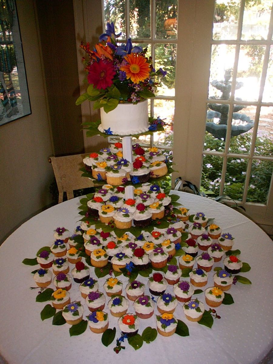 Royal icing flowers to match the fresh ones adorned this wedding "cake".