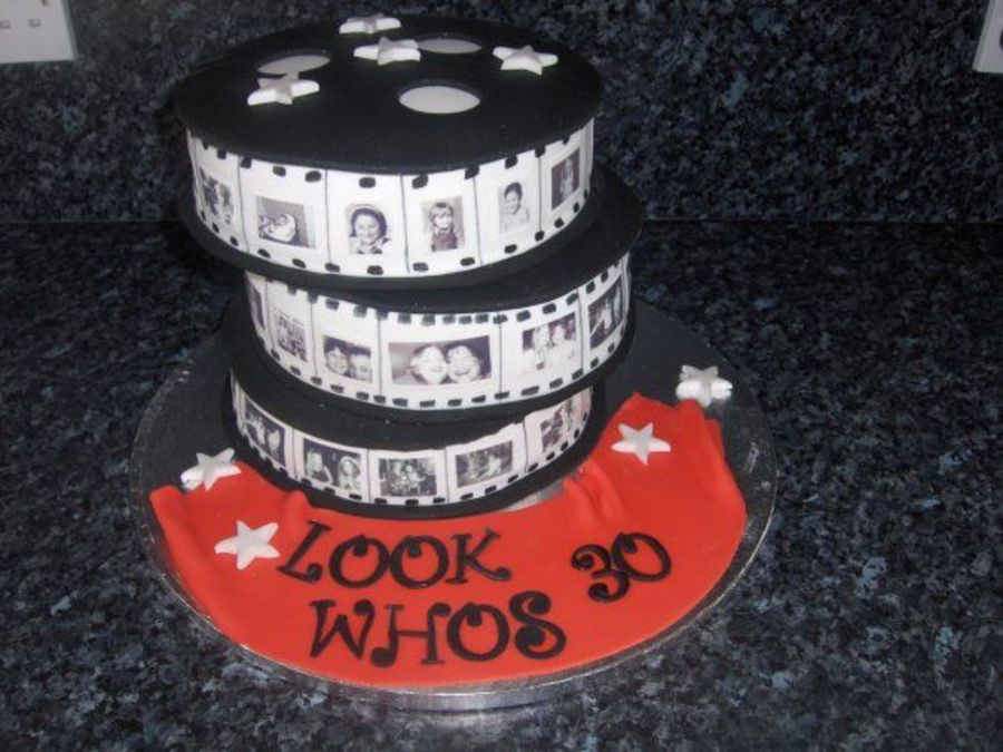 This was my birthday cake I made for my joint 30th birthday party we had a TV & Film themed costume party. the images are edible images of me and a friend through the years