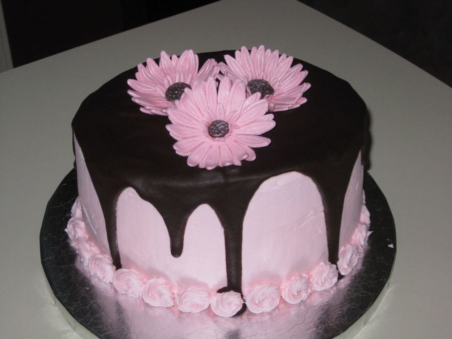 First time at making Gerberas - turned out ok. Birthday girl knew exactly what they were when she saw them so I guess they were a success. Apparently they are her favourite flower! Who knew! Choc cake w/hazelnut filling covered in BC then chocolate ganache.