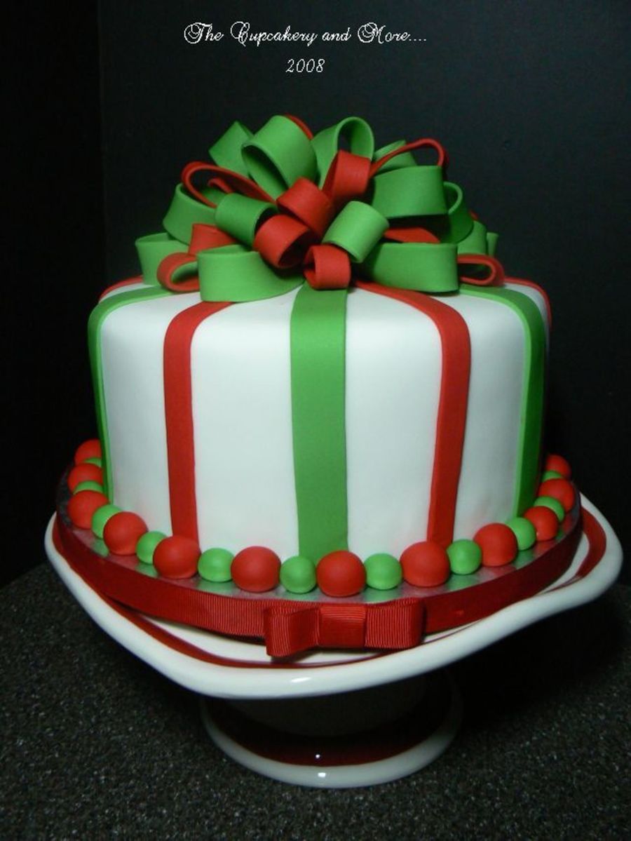 This is a cake I made for a dinner party. The inside is chocolate with chocolate ganache filling. I covered it in fondant and then added the fondant bow and balls. TFL
