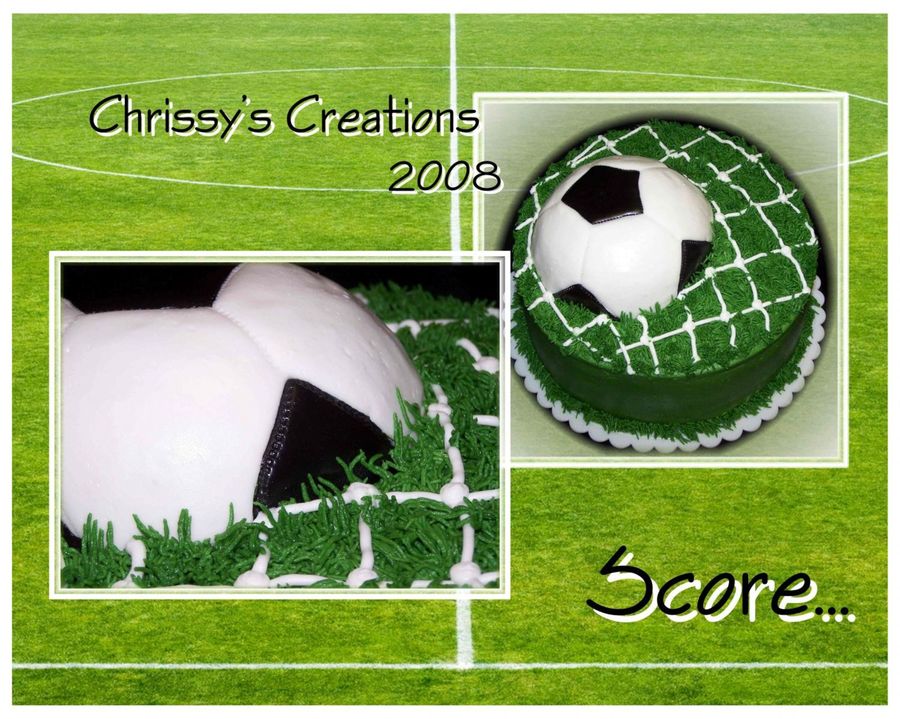 My daughter requested a soccer cake for her birthday. Ball baked in a bowl & covered in MMF. 10" round made of White Velvet Cake & covered in buttercream with the grass tip. TFL!