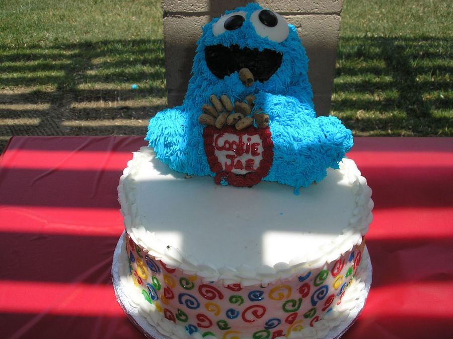 Did this cake using the Wilton Bear pan. Cake looks plain. I forgot to put the Sesame Street Band (Big Bird, Elmo, etc.) in front of cake.TFL
