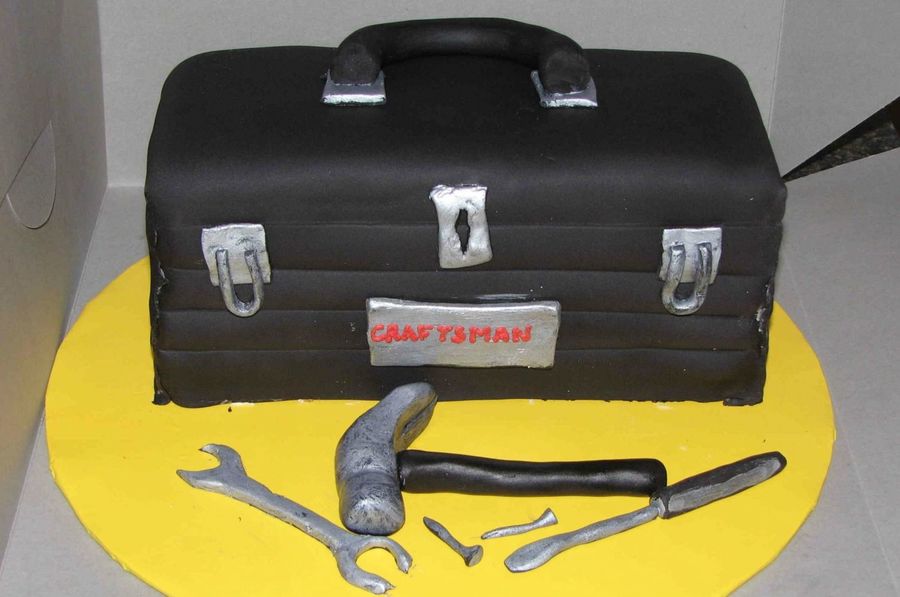 my dad owns more tools than anyone I know so I made this toolbox cake for him for his b-day. It's my first 3-d cake and also the first time I ever put fondant on a square cake. I think it turned out pretty good. Still need to work on keeping the bc from oozing out the seems. At the last minute I decided to write "craftsman" on the front and didnt do a very good job at centering it. Oh well. Dad liked it and thats what counts, right?