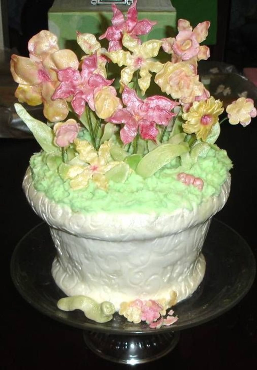 This is my first sculpted cake and also the first time using gum paste. I made the gum paste and I think maybe I need to perfect the recipe. Many of my flowers did not dry completely. I am teaching myself how to make cakes and I learned a lot doing this one. I got a little frustrated with the flowers so I just ended up do my own thing...instead of trying to form them like what was in a book. I made this for my mother's birthday : )