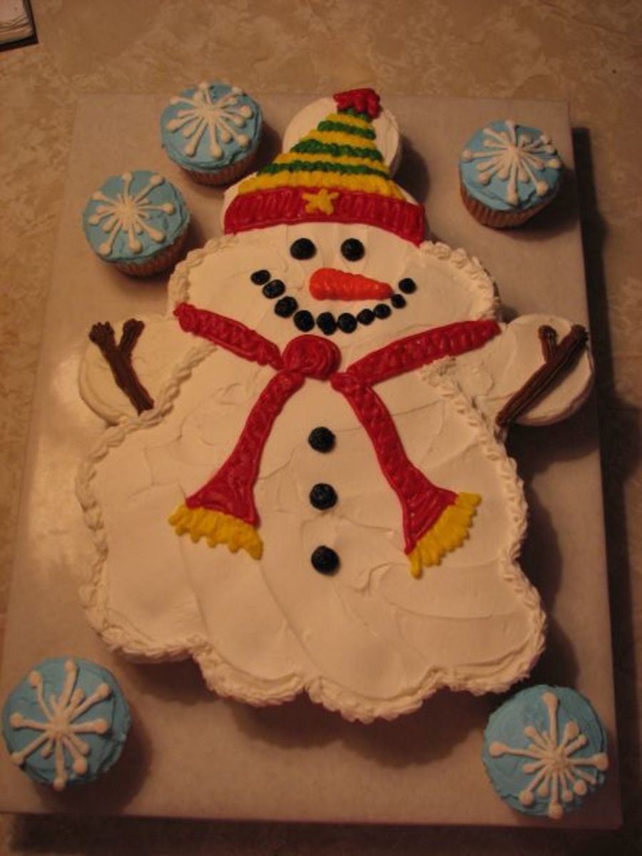 Used 24 cupcakes to make this snowman cake. Used a design I had seen on-line, but changed it a little from the orginal. All buttercream icing.