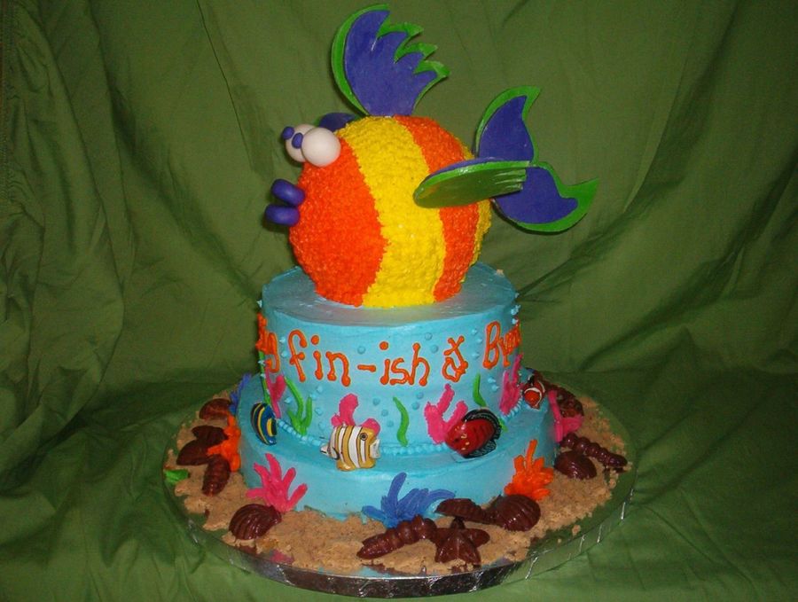This cake is from a Wilton book (again). It was perfect for my son's end of the school year party since they had their big fin-ish in elementry school and went to the "big" school in fall. The kids loved it....