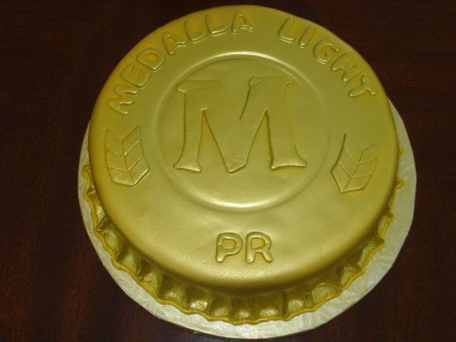 Chocolate cake filled with chocolate ganache, crumbcoated with chocolate buttercream, covered with fondant and air brushed with AmeriColor Gold Sheen color.