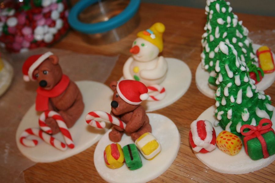 a collection of the cake toppers I did this year....all sugarpaste and MMF...Bears are from AIne2's tutorials ...wonderful and easy ....oh and trees are also from Aine2!!