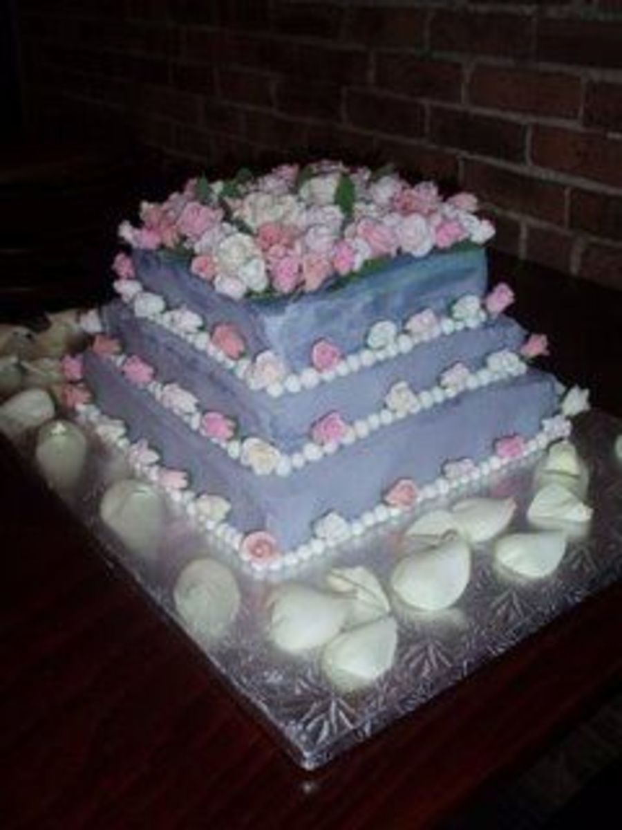 A Devil's food cake filled and frosted with Sylvia Weinstock's recipe for buttercream frosting. The over 125 roses are made of fondant.