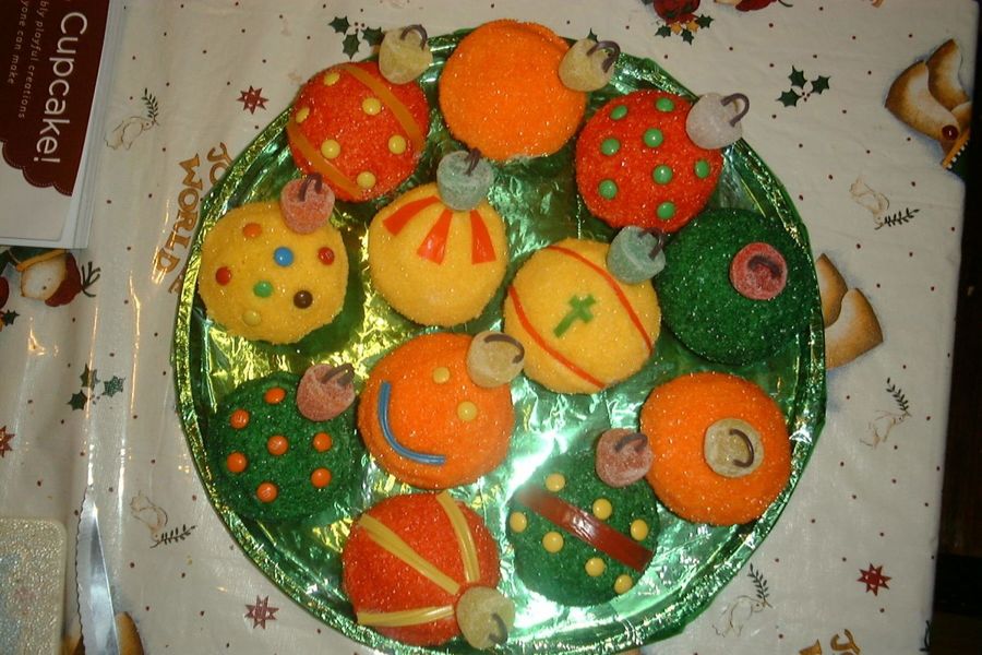 Yellow Cake with white BC. Dipped in color sugar sprinkles. Decorated with Fruit Loops, mini M&M's, Twizzle's and thin pretzels to hold gum drops.