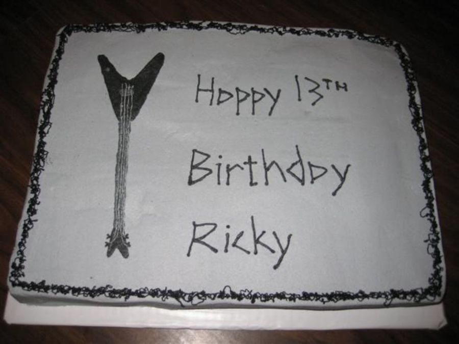 This was made for the same kid that I made the other guitar cake for that is in my gallery, and he was going to be surprised with the black guitar on the cake as his birthday present.