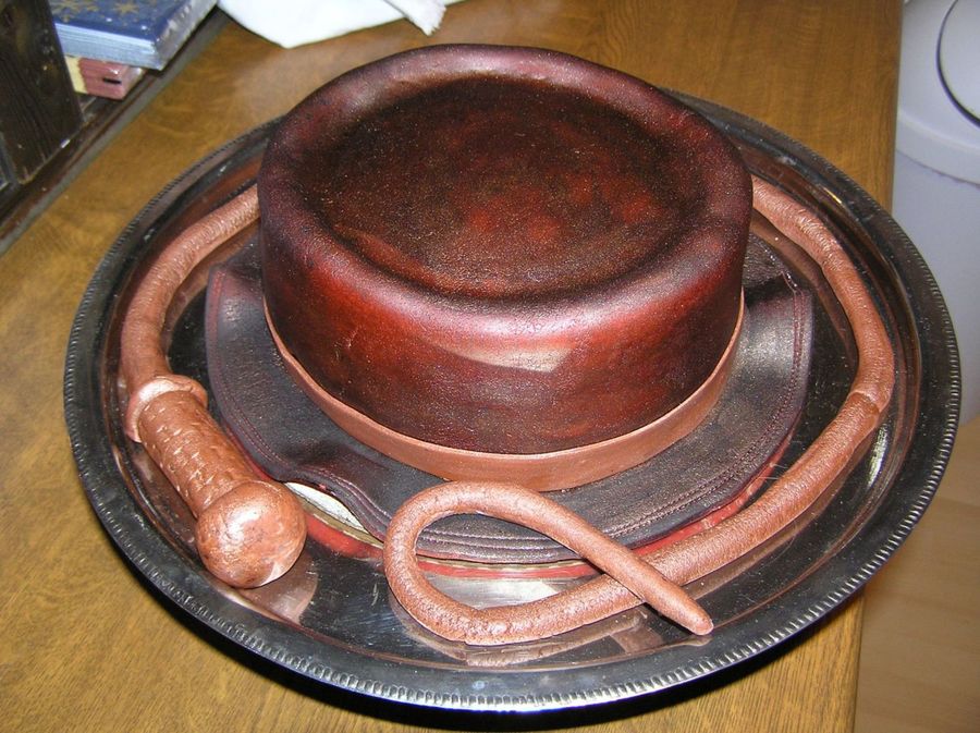 This was a tough one because I only had red fondant made - but it turned out much better than I thought. I airbrushed with brown and the red undertones made it look very realistic. I also painted over the cake and whip with a vanilla/bronze glitter combo. I think the rim of the hat needed to be an inch bigger too.