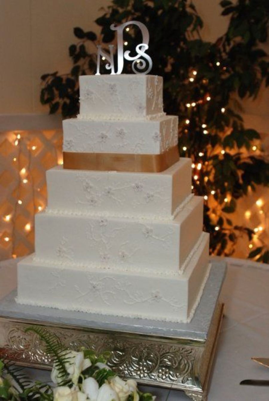 I did this cake to replicate the brides dress. It was my very first cake in my new shop and I was up until 2:00am the night before getting it done. I am very pleased with how it turned out.