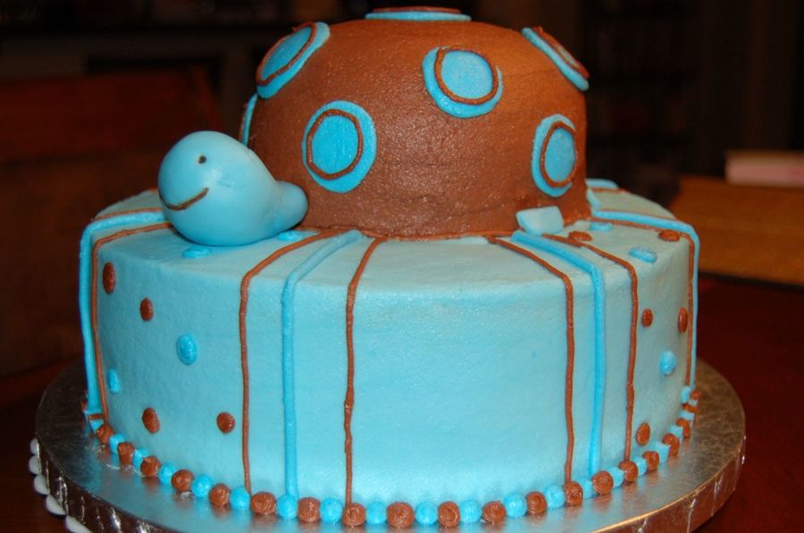 This matched the baby room's theme. Covered in buttercream icing with fondant head, feet, and tail.