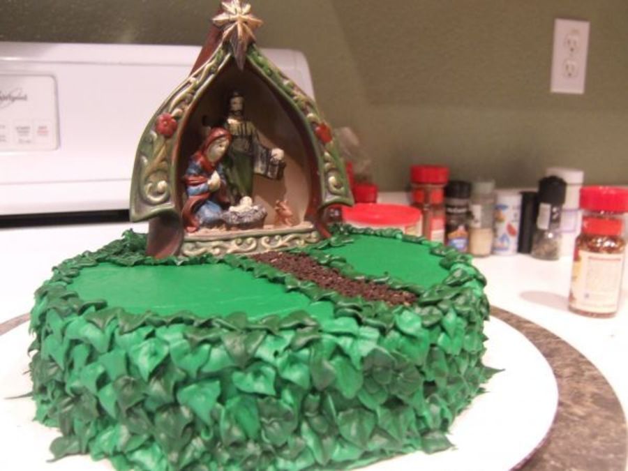 the nativity scene is just a topper put on the cake.