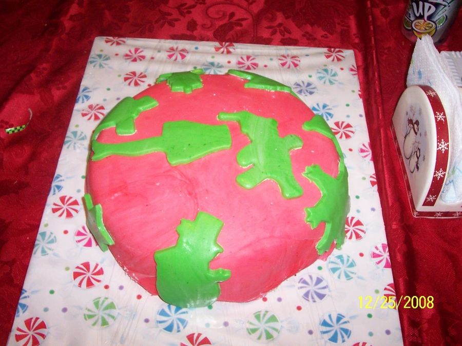 Just a simple cake for Christmas. I used 2 9-inch pans of Red Velvet w/ Cream Cheese filling. I covered it with red fondant then used Christmas Cookie cutters to cut out the green fondant for decorations.