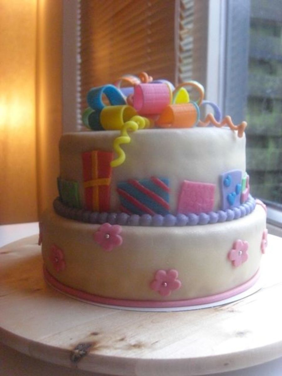 Made this cake for my mom's 60th b-day. Maybe a bit childish, but she loved it. I meant to decorate both layers with presents, but it turned out to be more work than expected, so I went the lazy way on the bottom cake, haha.