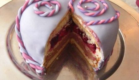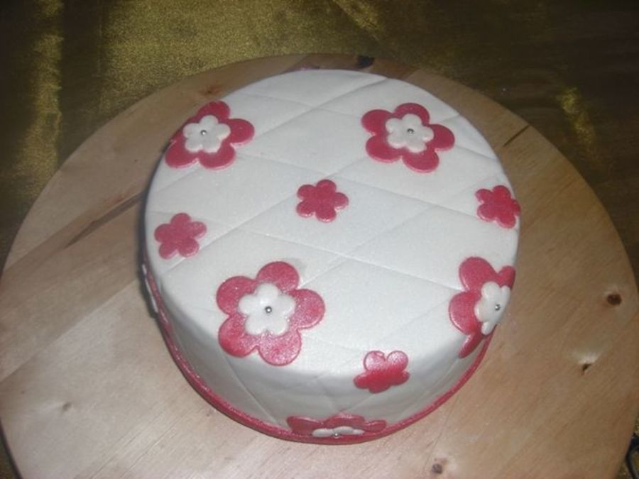 A simple little cake made for visiting my father in law (who we don't see very often). Covered and decorated with part MMF, part marzipan (mixed together, we call it marsefond).