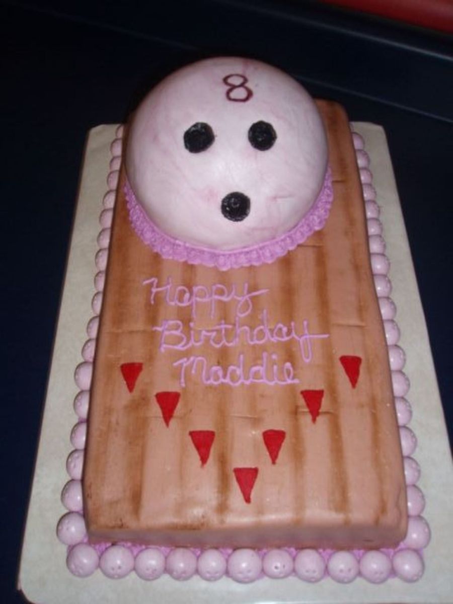 This is a cake done for my daughters 8th birthday party held at a bowling alley.