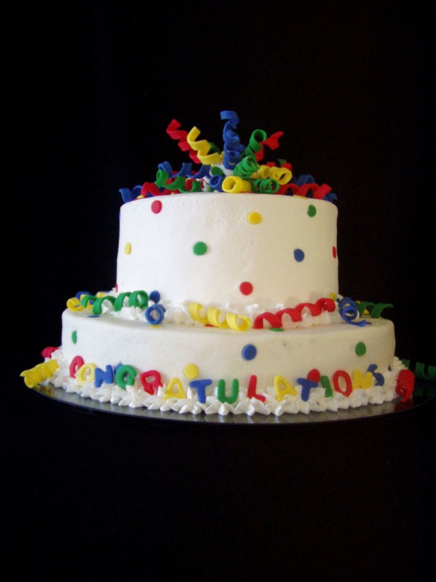 12" and 8" rounds. Inspired by WIlton design. Curlicues, polka dots and letters are fondant.