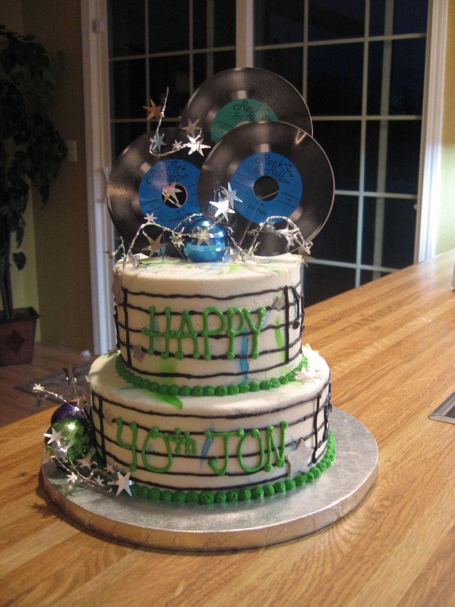 Disco themed cake with musical notes around the cake.