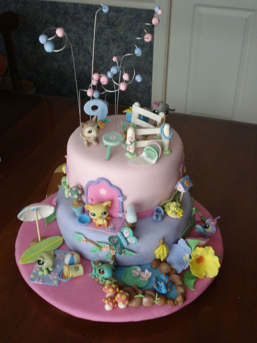 This was done for a little girl who wanted a Littlest Pet Shop birthday cake. I wasn't sure what I was going to do at first so just jumped in and just began making accessories. This was fun to do and could have added more items but had to stop somewhere. The animals were hers.