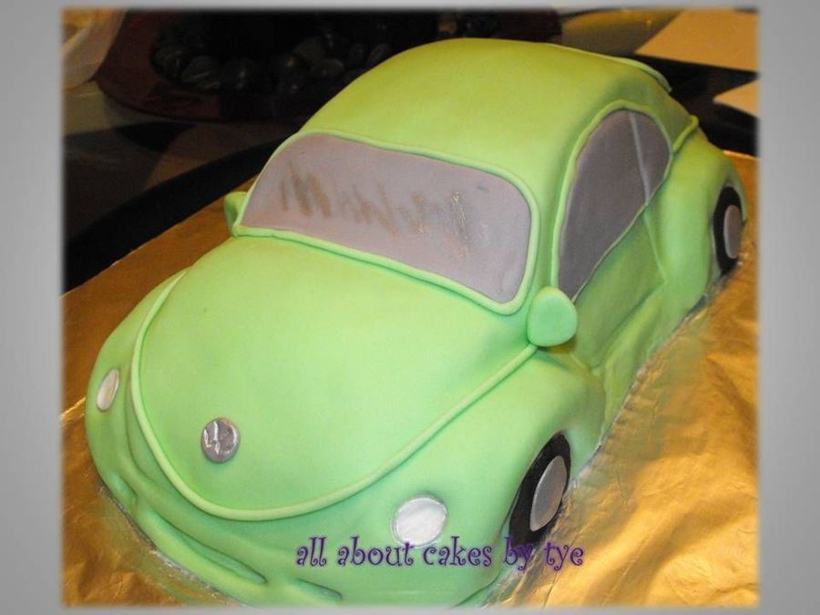 Birthday girl drives a lime green VW Bug... Lemon cake covered in Fondant