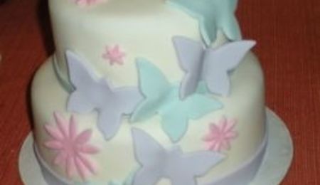 My very first one that I did with my friend. I think it's Marshmallow Fondant.